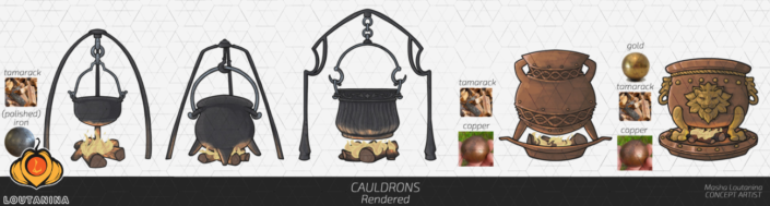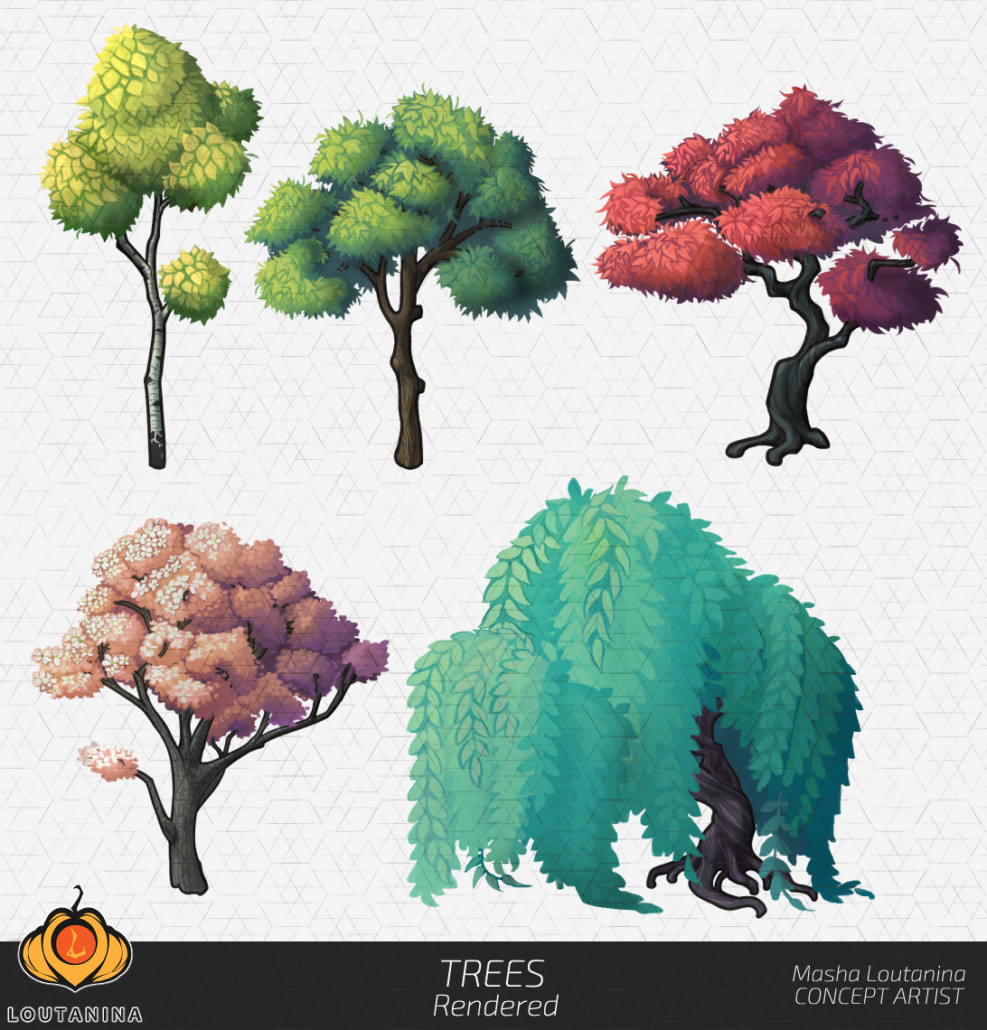 Stylized Game Concept Art of Environmental Assets which I designed for a project of which the name has been redacted.